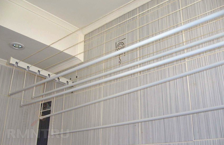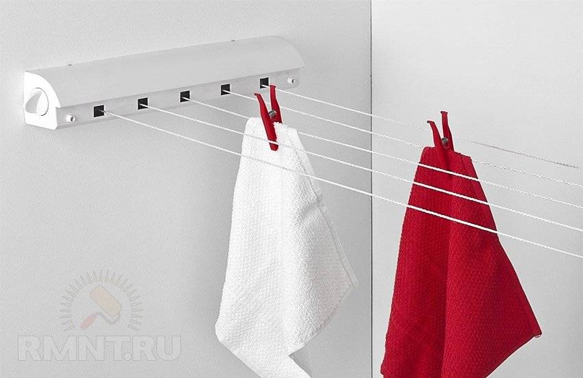 Инерционные сушилки выглядят очень современно и интерьер ванной точно не испортят. Такие сушилки позволяют регулировать степень натяжения веревок, а стоят порядка 700 рублей