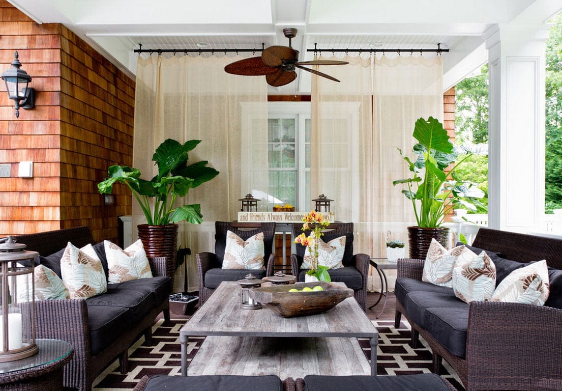 Универсальным вариантом для декора веранды является использование разнообразных растений. Такой прием здорово оживит помещение и добавит чувство еще большего единения с природой. Помните: на веранде много цветов не бывает. Так что смело дерзайте!
