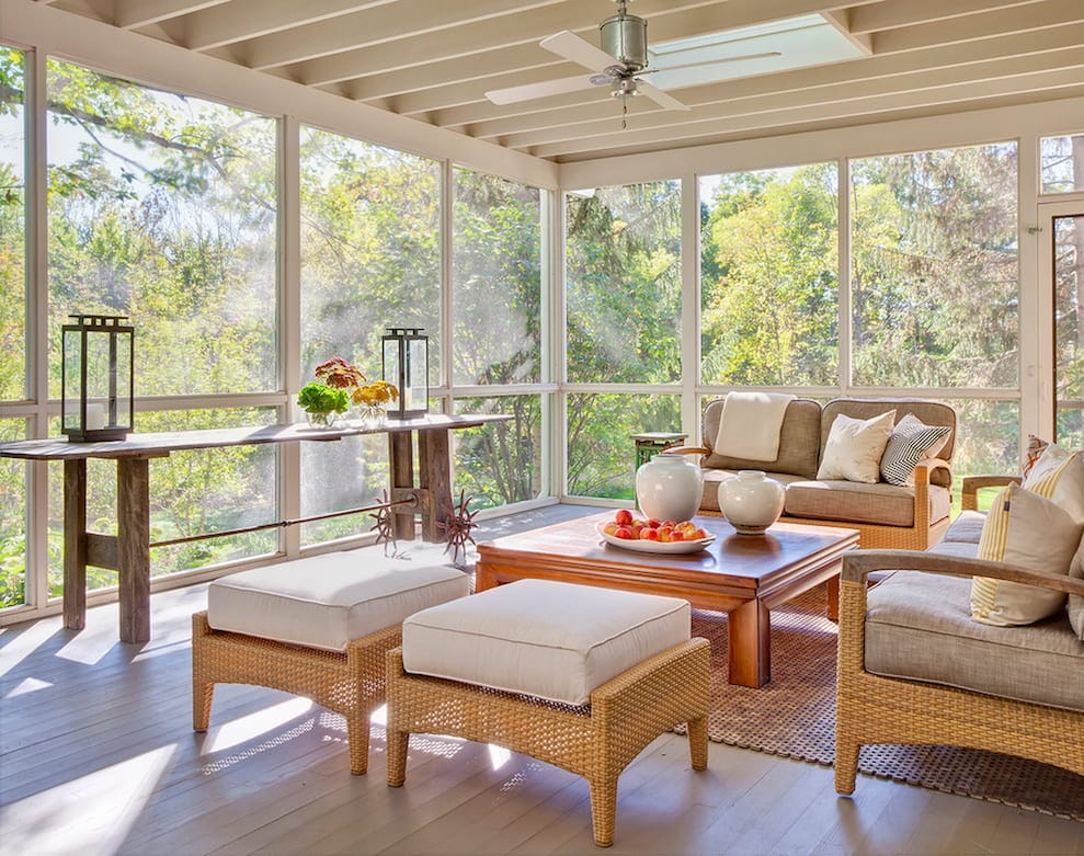 Светлая и просторная веранда в теплых тонах