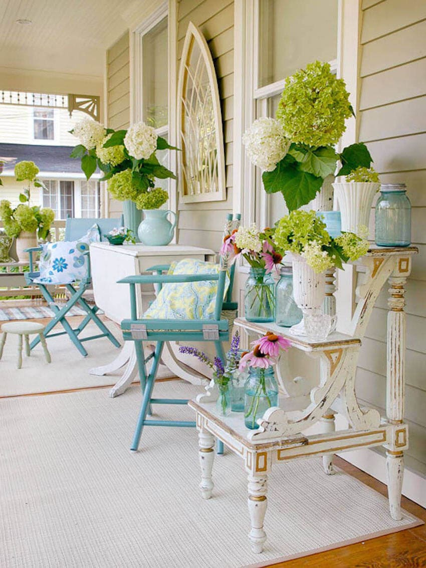 Декор веранды цветами и другой атрибутикой