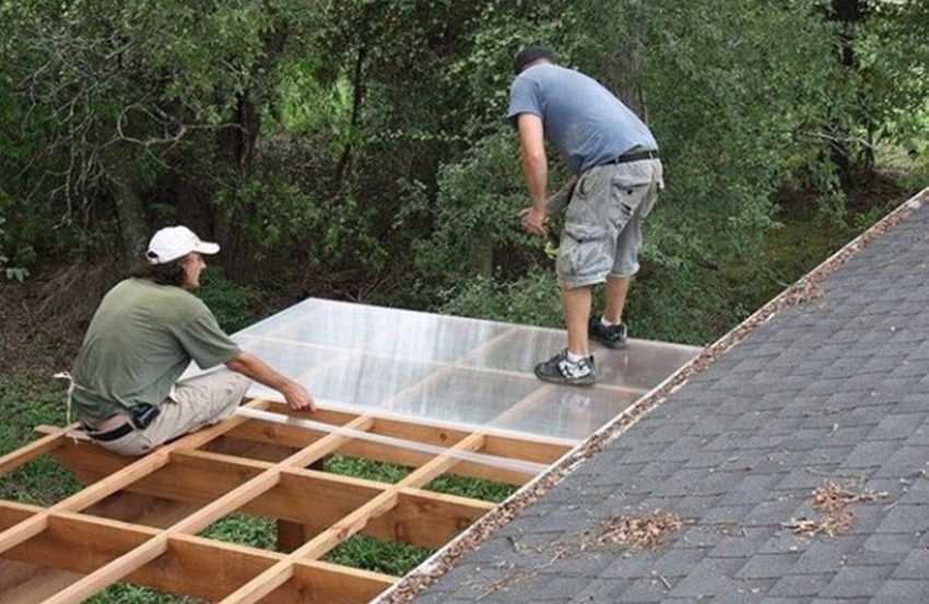 Материалы для кровли могут быть самыми различными: профнастил, стекло или цветной поликарбонат, благодаря которому можно придать крыше куполообразную форму. Выбор остается за вами.