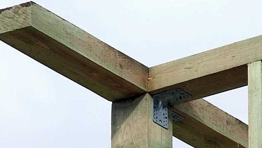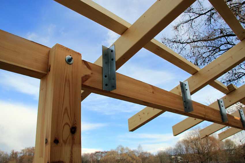 К конструкциям стенок или к опорным стойкам прикрепите стропила. Их можно составить из деревянного бруса 100 на 100(150)мм.