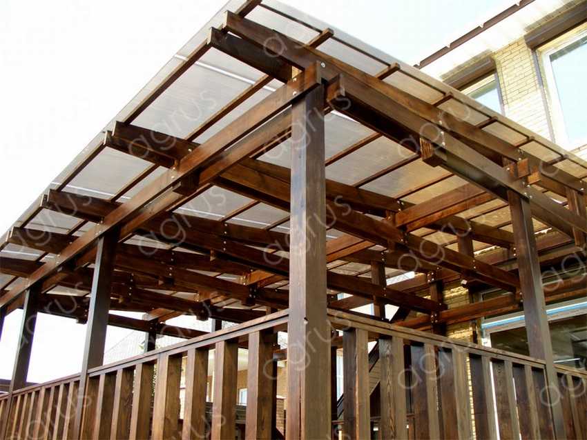 Крыша террасы может быть съемной, но лучше надежно закрепить ее на каркасе, если планируется построить долговечную веранду. Как и пол, основная часть крыши делается из древесины. Надежность и долговечность конструкции зависят от того, насколько точно будет соблюдена технология строительства.
