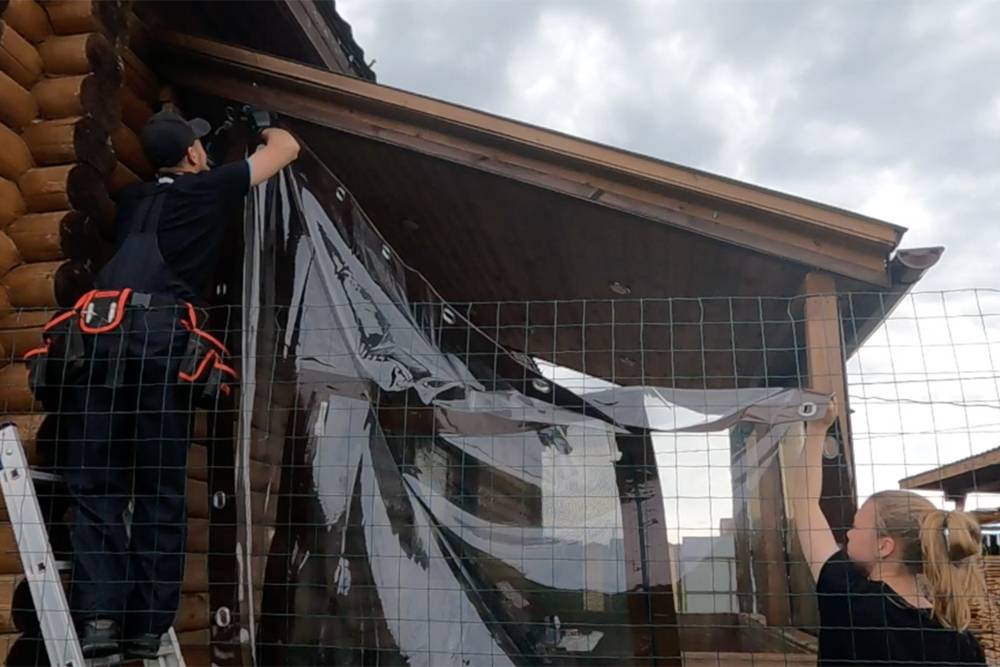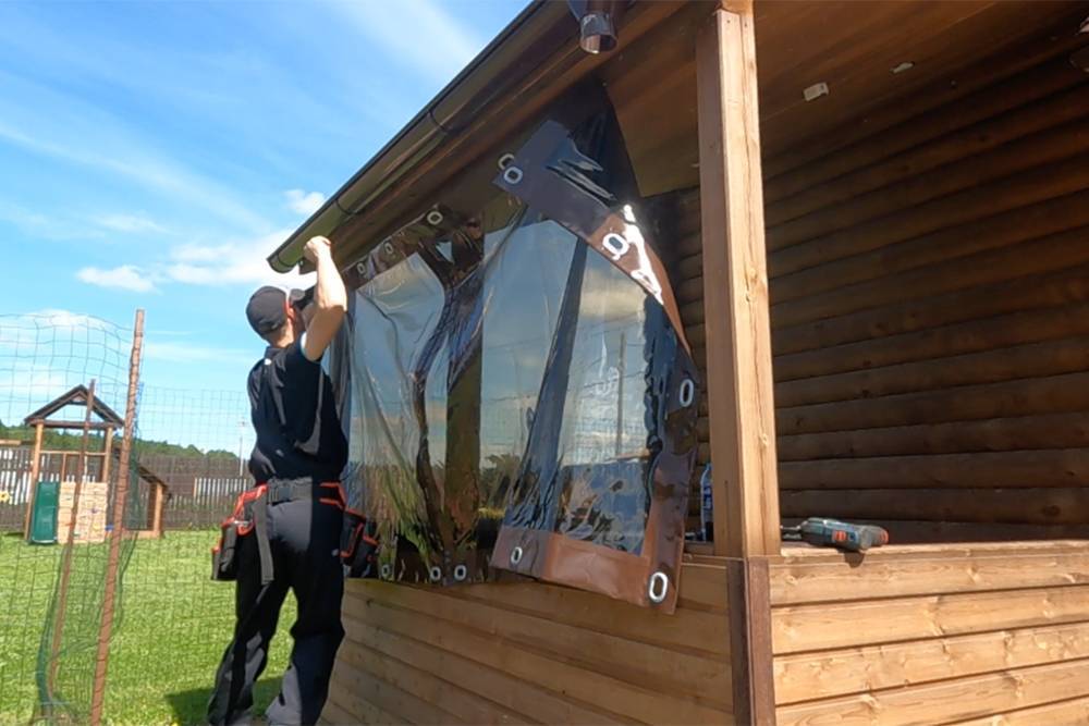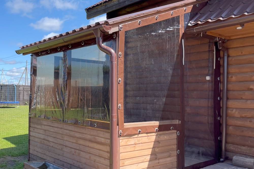 Уже в 2022 году мы решили установить на веранду мягкие окна, чтобы защититься от насекомых, осадков и ветра. Мягкие окна — это прозрачная ПВХ-пленка, которую можно в любой момент свернуть. Еще такие окна называют уличными шторами.