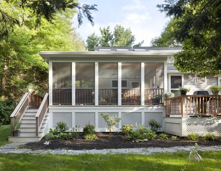 В условиях, когда приходится опираться на изначальное назначение данного помещения, хочется порекомендовать пристраивать веранду к стене дома, выходящей на задний двор или с боковой стороны дома – это гарантирует находящимся на веранде людям отсутствие любопытных глаз и улицы с активным движением.