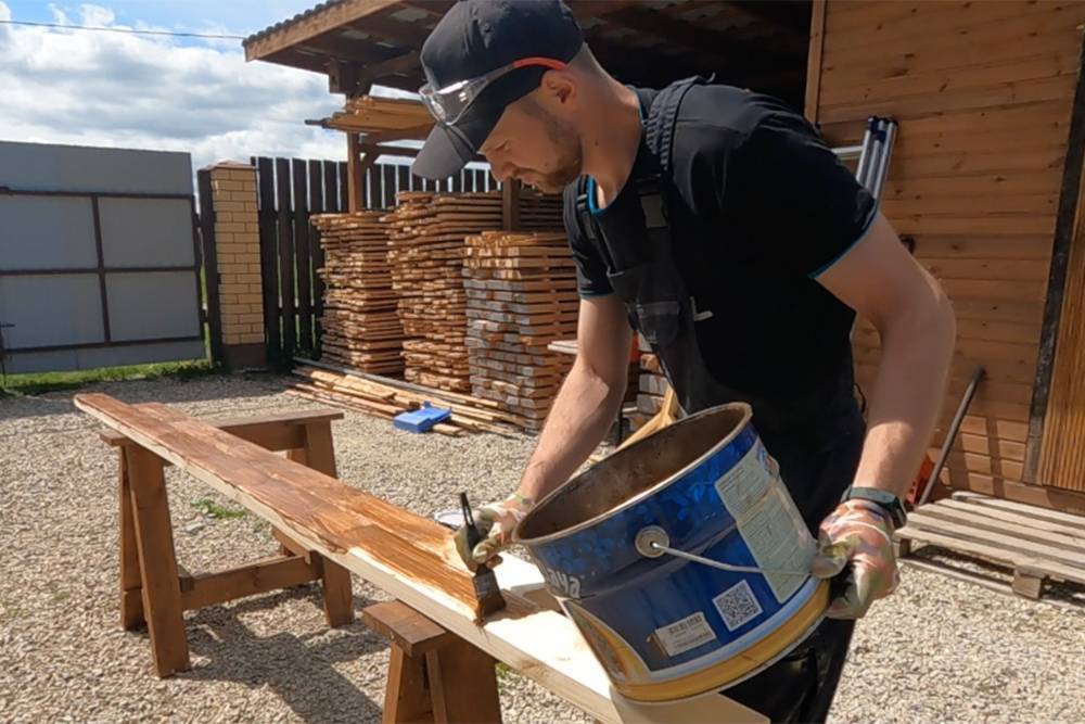 Местами пришлось сделать закладные из доски 50 × 100 мм, чтобы к ним крепить шторы. Отпилил в размер, обстрогал, покрыл антисептиком и прикрутил