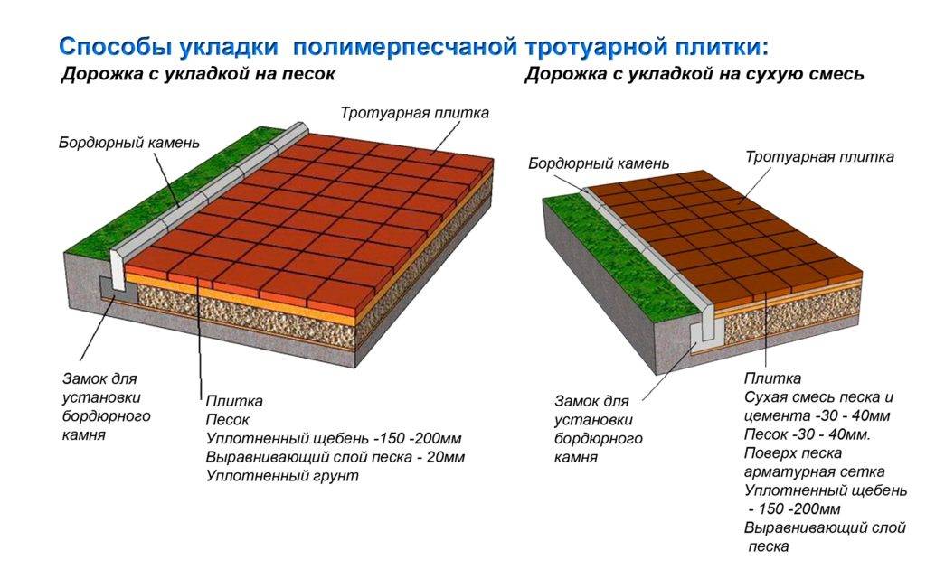 Поэтому обычно на хорошую основу, очень плотно укатанный и утрамбованный слой песка или на цементную стяжку, укладывают качественную тротуарную плитку толщиной не менее 50 миллиметров.