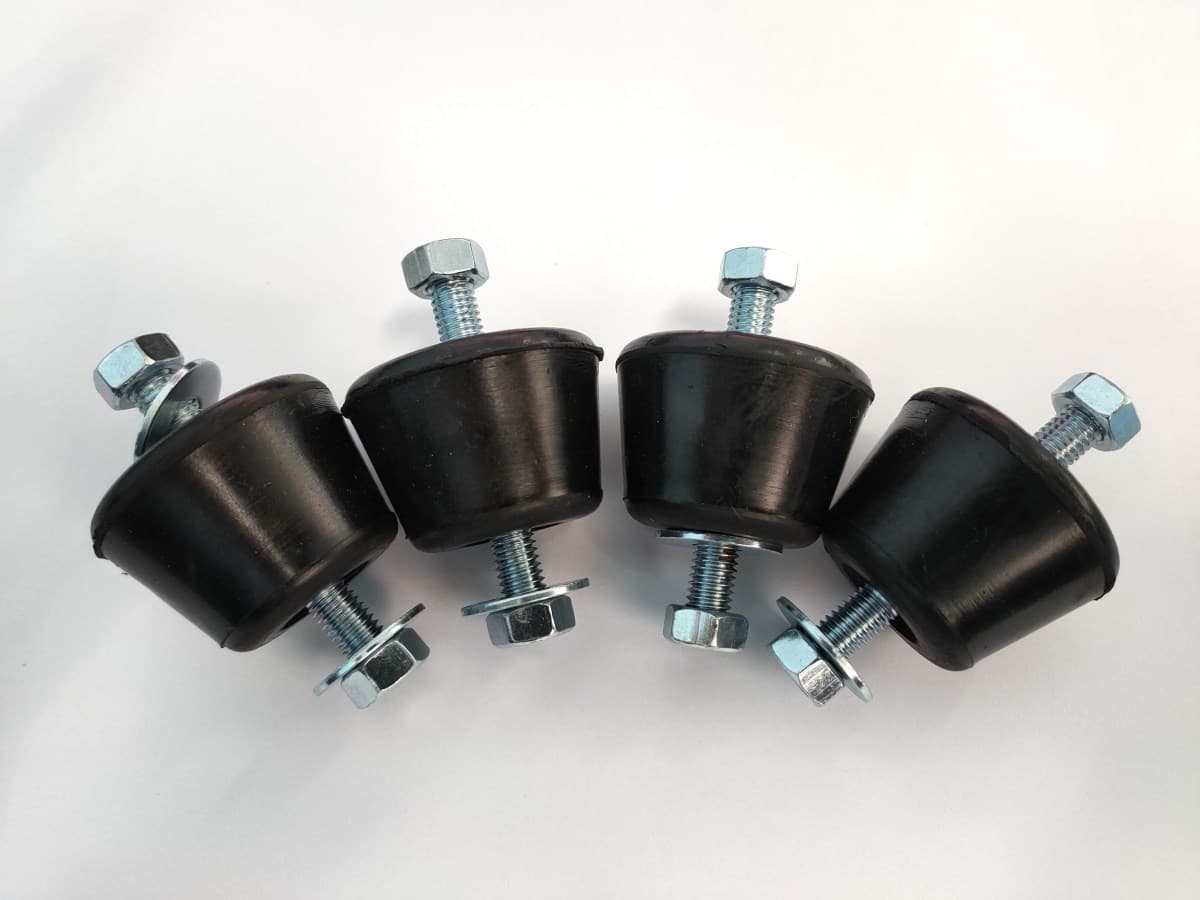Применяются для уменьшения вибрации и шума от наружного блока кондиционера весом до 70 кг, передающиеся через кронштейны закрепленные на стене. Материал – резина/металл. Температура применения -40ºC + 80ºC. Твердость резины 45 Shore (мягкая)