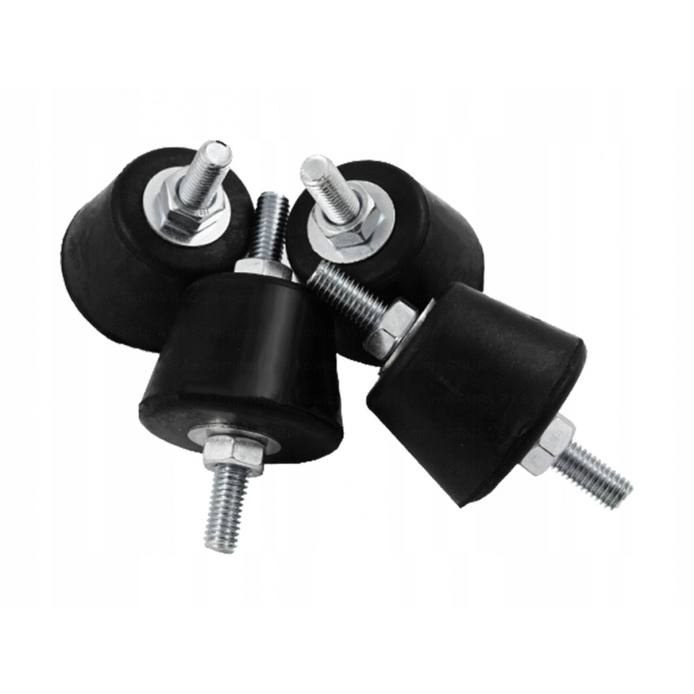 Виброгасители для наружных блоков или сайлентблоки для лап предназначены для гашения колебаний средней и высокой частоты. Они устанавливаются между кондиционером и металлической опорной стойкой. Вместе с комплектом из четырех виброопор идет 8 шайб и гаек из оцинкованной стали. Снизить уровень вибрации позволяют и другие крепежные элементы. Виброгасители предлагаются в виде резиновой прокладки с отверстием под болт М8.
