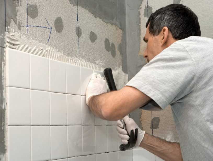 Для укладки материала существует специальный клеевой раствор, который равномерно распределяется по поверхности стен или плитки специальным зубчатым шпателем. Выравнивается плитка при помощи уровня.