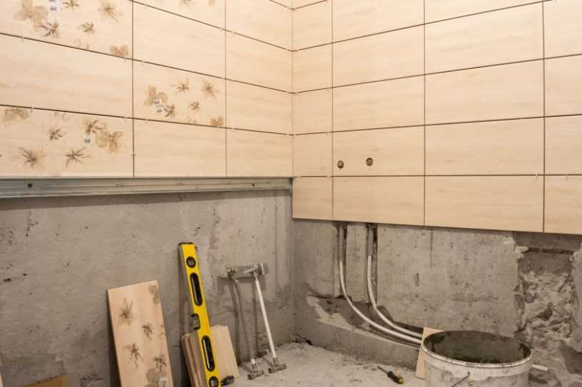Отделочные работы обычно начинаются с поверхности пола. Зная точное количество квадратных метров, нужно брать материал немного с запасом. На полу или на стенах места, находящиеся на виду, должны быть отделаны целыми плитками, а обрезанные элементы можно скрыть под сантехникой или мебелью.