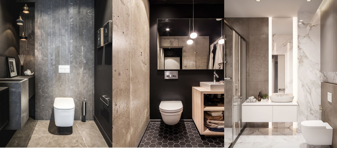 Серый цвет в тренде уже несколько сезонов подряд. Универсальность всех оттенков серого позволяет создавать практичные и при этом благородные образы помещений. На сером фоне белоснежная сантехника смотрится великолепно, блеск хромированных поверхностей аксессуаров для ванной эффектно дополняет образ. Чтобы интерьер утилитарного пространства не был слишком «прохладным» и суровым», специалисты рекомендуют интеграцию предметов из дерева или его имитации. Даже небольшая система хранения или открытые полки из дерева теплой палитры преобразит создаваемый образ, поднимет градус цветовой температуры интерьера.
