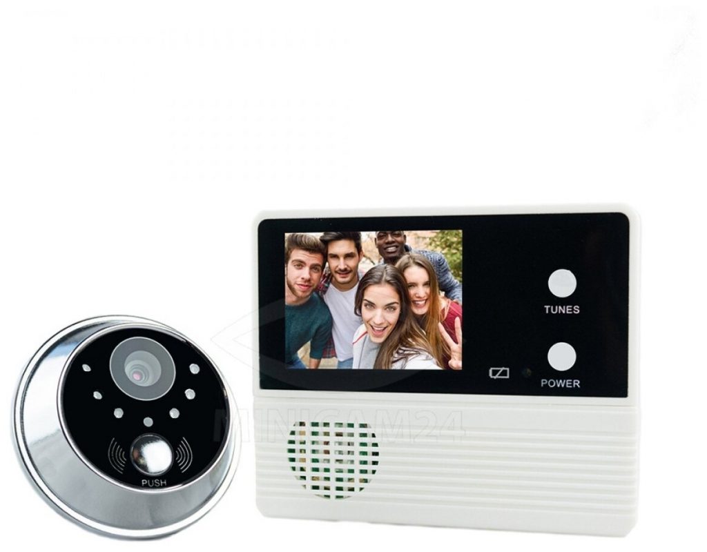 Модель изготовлена согласно четкому принципу, где все лишние детали убраны, сразу же при нажатии обычной кнопки звонка активируется модуль системы, теперь запускается экран делая фотографирование гостей. Даже если разбита в коридоре лампочка и ничего не видно, то вору это не поможет, так как даже при слабом освещении срабатывает ИК-подсветка для осмотра. Кроме этого здесь есть цифровое увеличение изображения, так что можно рассмотреть все мелкие общие детали, такие как документы гостей. Чтобы работала общая видеозапись того что происходит у объектива достаточно нажать кнопку блока. У устройства карта памяти не загромождена лишней информацией, есть возможность делать еще дополнительные снимки в ручном режиме, изделия отличаются таким моментом, как экономичность питания конструкции.