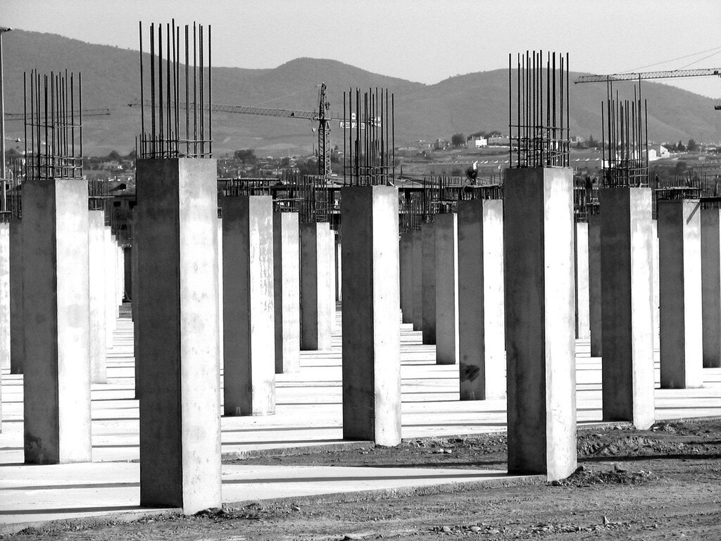 Столбчатый монолитный фундамент. Изготавливается из дерева или армированного бетона, представляет собой сплошные, цилиндрической формы элементы, соединенные балками. Устраивается путем погружения готовых столбов в грунт или заливки бетонной смеси в пробуренные скважины. Монолит столбчатого типа не рекомендуется использовать на подвижных и слабонесущих почвах.