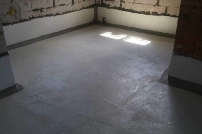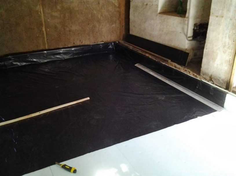 - Пол необходимо обработать грунтовкой, причем, если она будет на основе битума, то это существенно увеличит показатели гидроизоляции.