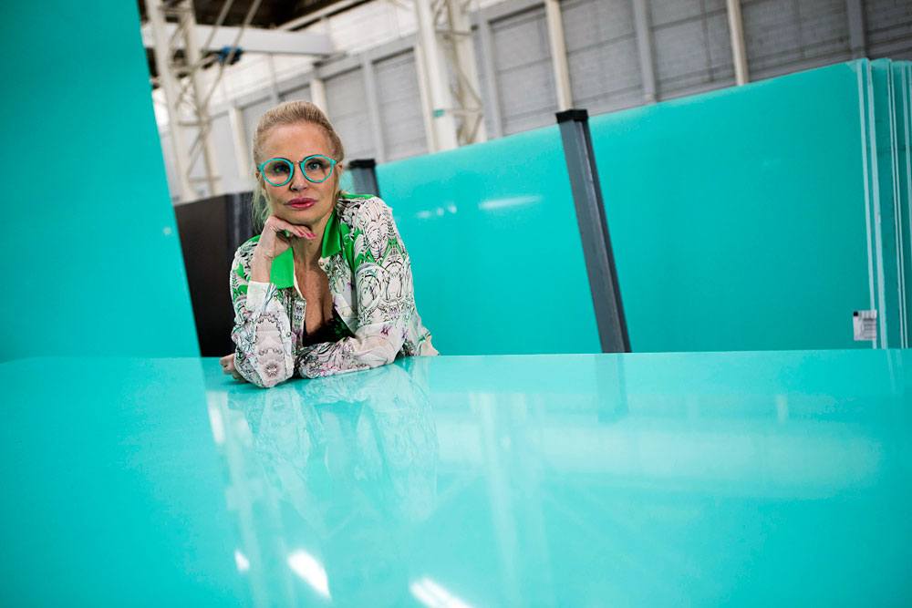Дизайнер Брюнет Фраккароли и слэбы кварца Acqua Fraccaroli (Фото с сайта www.casa.abril.com.br)