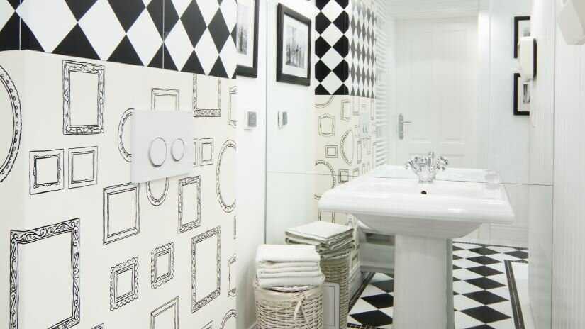 Обратите внимание! При покупке самоклеющихся обоев, важно внимательно читать инструкцию от производителя. Например, некоторые пленки нельзя клеить на известняковое основание. Это значит, перед работой с ними основание стен ванной комнаты придется полностью очистить