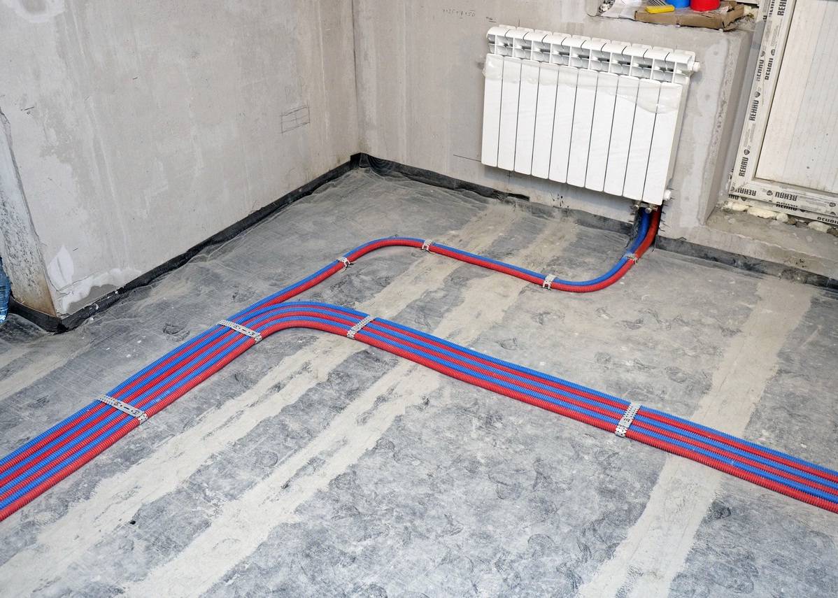 Наиболее оптимальным способом равномерно прогреть все помещение является прокладка водяных теплых полов в доме. Возможно использовать только эту систему, а возможно сочетать ее с другими отопительными приборами. Например, когда в комнатах установлены радиаторы, а в коридорах, ванной и санузле — теплый пол. То есть особенно актуальными теплые полы будут для помещений с кафельным или мраморным покрытиями.