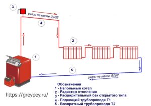 Если конструкция самотечная, то необходимо обеспечить большой диаметр труб. Причем они прокладываются с определенным уклоном – до 5 мм на 1 погонный метр.
