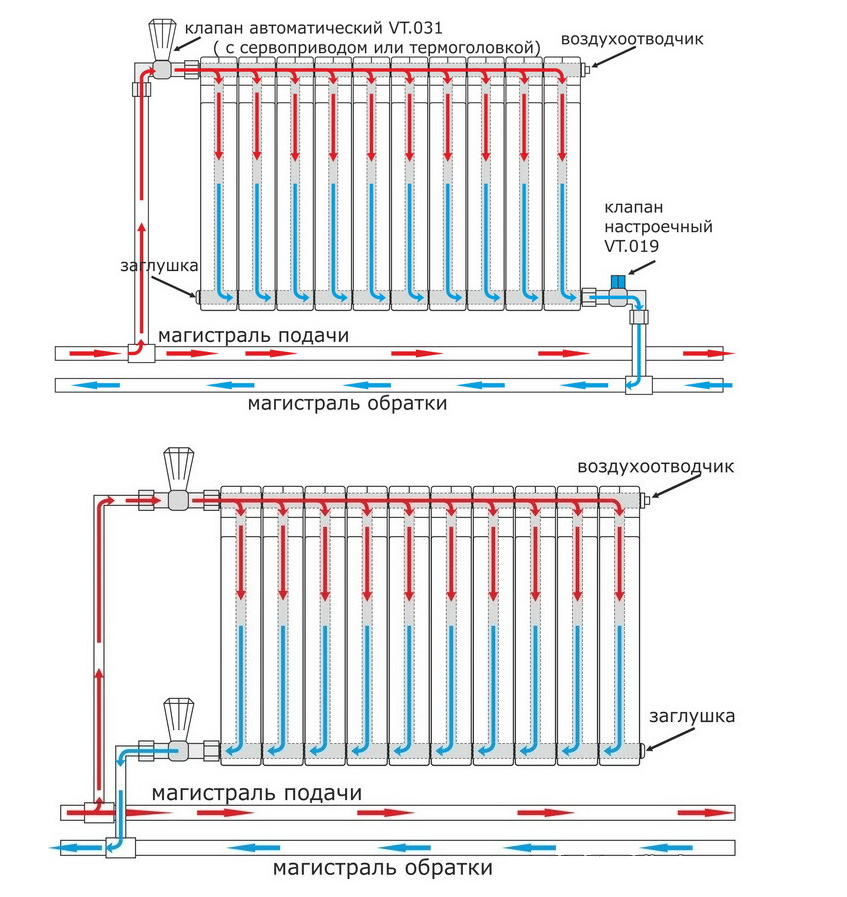- Проточные – тепловой носитель протекает внутри всех батарей, пока не дойдет до конца линии и не вернется в котел.