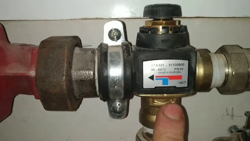 Данный прибор регулирует температуру подачи тепла, которая подводится к насосу. Клапан функционирует как смеситель с термочувствительным элементом.