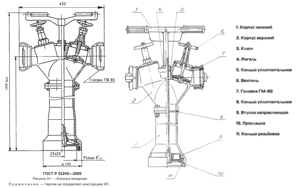 Схема и конструкция пожарной колонки