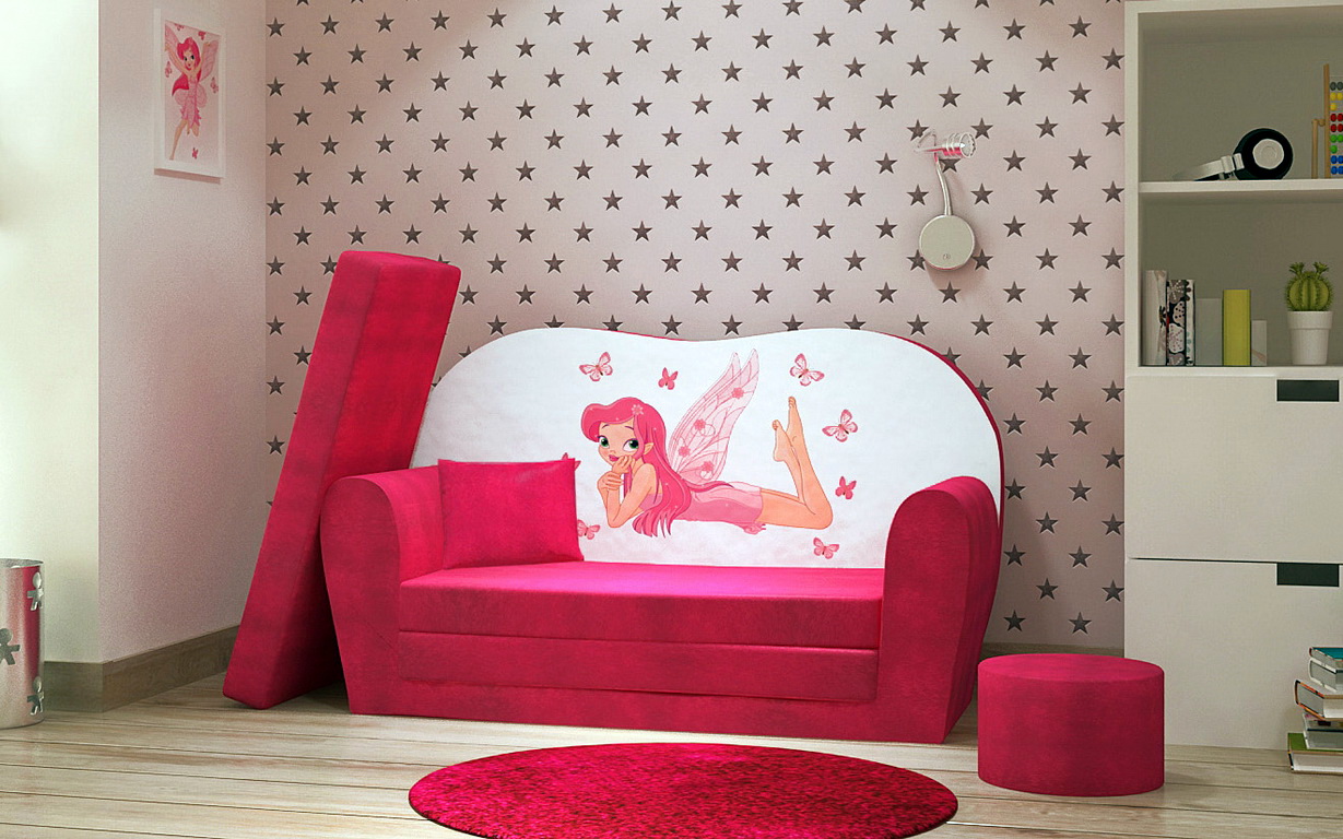 Многие девочки любят яркие насыщенные краски, поэтому лучше подбирать диванчик вместе с ребенком. Девчачьими принтами считаются феи, принцессы, единороги, гномы. Особенно привлекательны модели в виде карет, очаровательных животных, а также конструкции с балдахином.