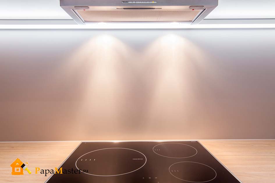 - Подсветка. Обеспечивает дополнительное освещение пространства плиты. Для подсветки используют галогеновые или люминесцентные лампы, реже обычные лампы накаливания.