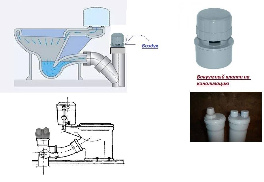 При сливе воды внутри канализационного коллектора создается разряжение: жидкость засасывает воздух. Причем количество его может быть достаточно большим: к примеру, вода из стиральной машины (поступает под давлением насоса) требует 25 л/с воздуха на 1 л/с жидкости.