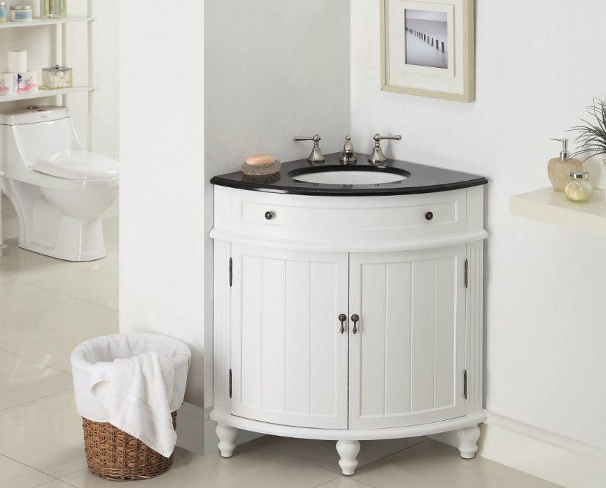 Мини-мебель аналогична обычным тумбочкам. Ее также монтируют и на пол, и вешают на стены. Модели на ножках упрощают уборку – с ними намного проще мыть полы и убирать растекшуюся воду. Возможно дополнительно провести крепление каркаса к стене, чтобы тумба не перевернулась.