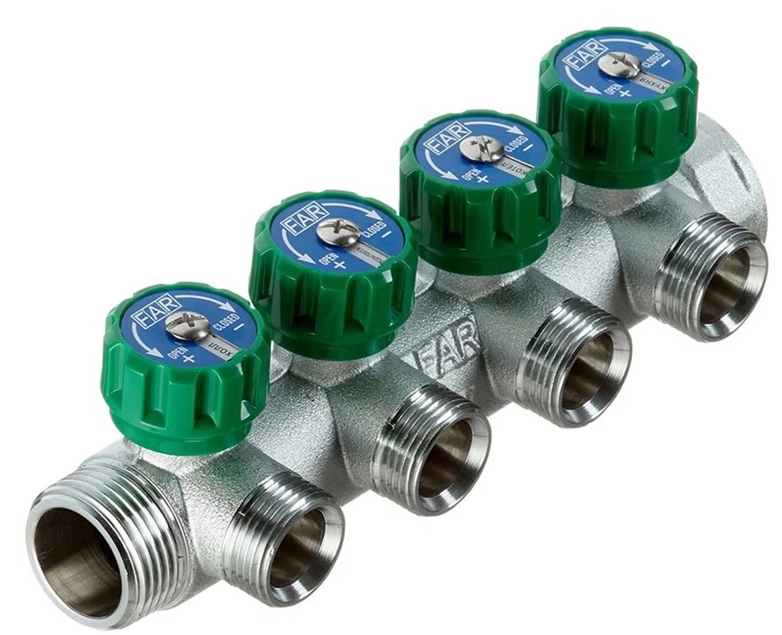 FAR Multifar (3824 134) 1″ НР-ВР, 4 отвода 3/4″ евроконус