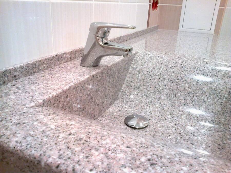 Создается из композитных материалов — гранитной или кварцевой крошки и акриловых смол, как связующих элементов. Качественная модель содержит до 80% каменных элементов — такая не уступает по прочности натуральным разновидностям, но и стоит дороже. Чем ниже процентное соотношение, тем менее прочным будет готовое изделие.