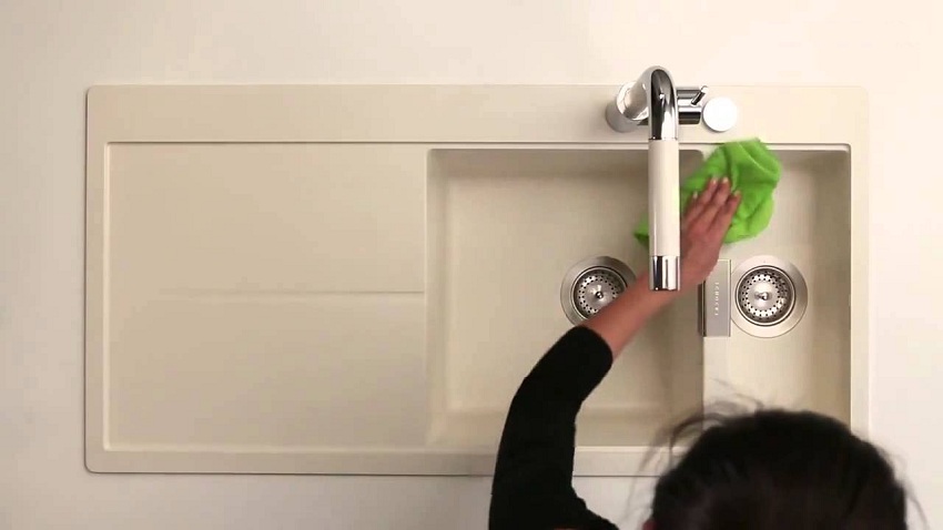 Для ухода за мойкой из искусственного камня используют мягкие губки и салфетки