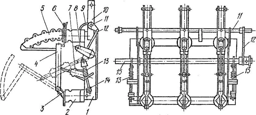 - Подвижные ножи серповидного типа на пружинном механизме.
