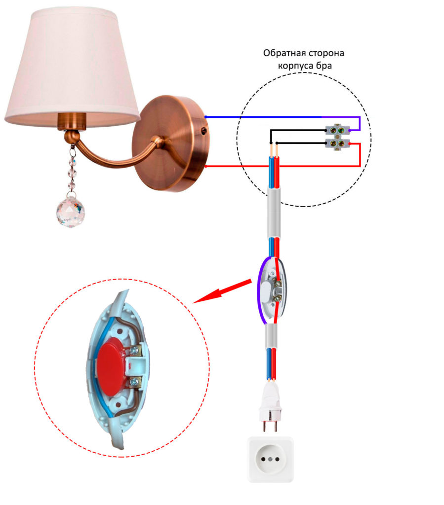 Как подключить бра с выключателем шнурком, цепочкой — 3 простые схемы.