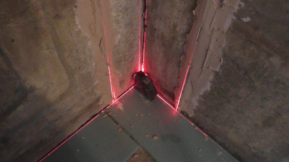 Чтобы определить границы нанесения штукатурки, находят самую выпуклую точку на основании. К ее уровню добавляют 3 мм и с помощью лазерного уровня или отвеса, наносят отметки на стены, потолок и пол;