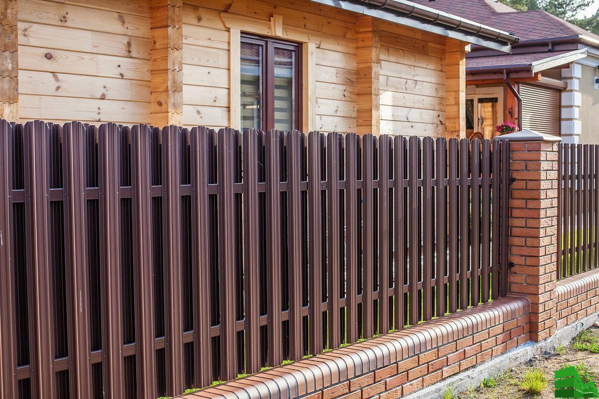 Сегодня популярность набирают практичные и долговечные комбинации, в которые входят столбы из кирпича и панели из профнастила. К основным плюсам таких конструкций можно отнести: