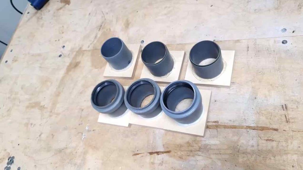 Аналогичным образом изготавливаем две остальные задвижки. К циклону присоединяем пластиковый тройник, а к нему — шиберные задвижки.
