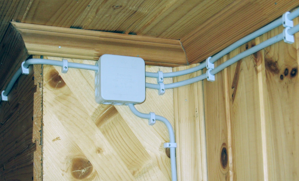 Самый дешевый способ прокладки электропроводки – поместить провода по поверхности стен. Кабели закрепляются при помощи клипс, хомутов или скоб. Затем сверху накладывается слой штукатурки. Минус способа – требуется дополнительный бюджет для оштукатуривания поверхностей.