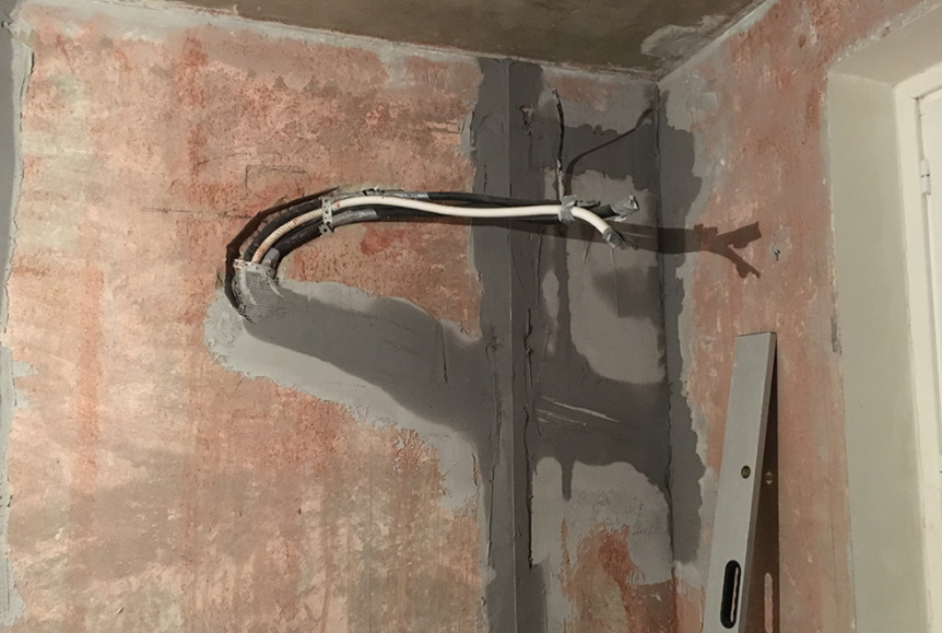 Опустим все подробности работ по замене электропроводки в хрущевке, доверим это дело специалистам, замечу только, что по окончании монтажа проводки в хрущевке, до начала штукатурки, важно сфотографировать все стены с проводкой и коммутационными коробками. Это впоследствии вам сильно пригодится. Да, работы нелегкие и, не имея серьезной практики, лучше их самому не проводить