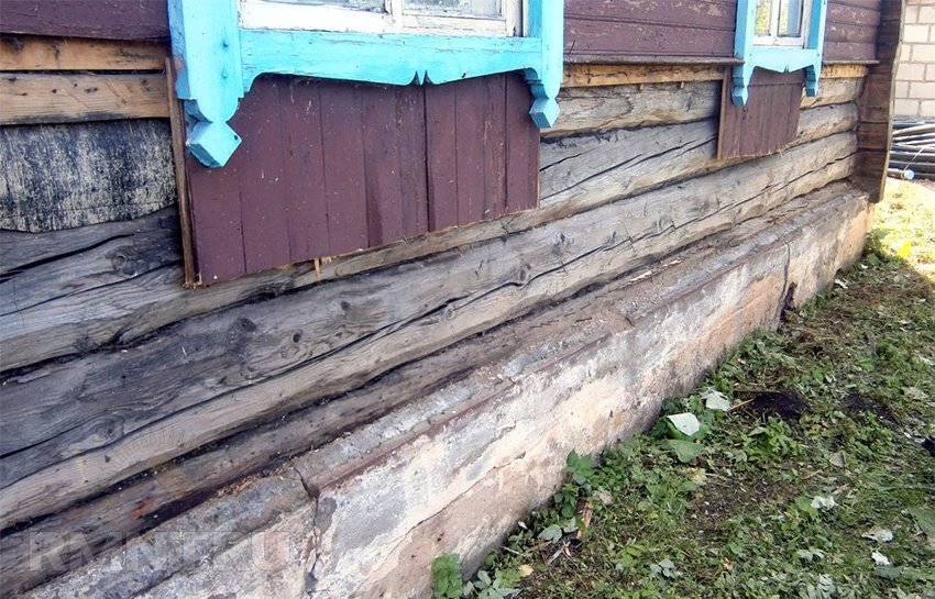 - опоры могли просто со временем уйти в землю, что вызвало либо чрезмерное увлажнение нижних венцов, либо перекос дома