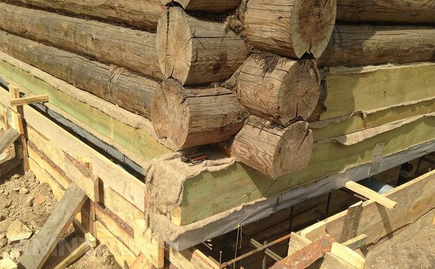 Если сруб стоит на ленточном фундаменте, поступают так: