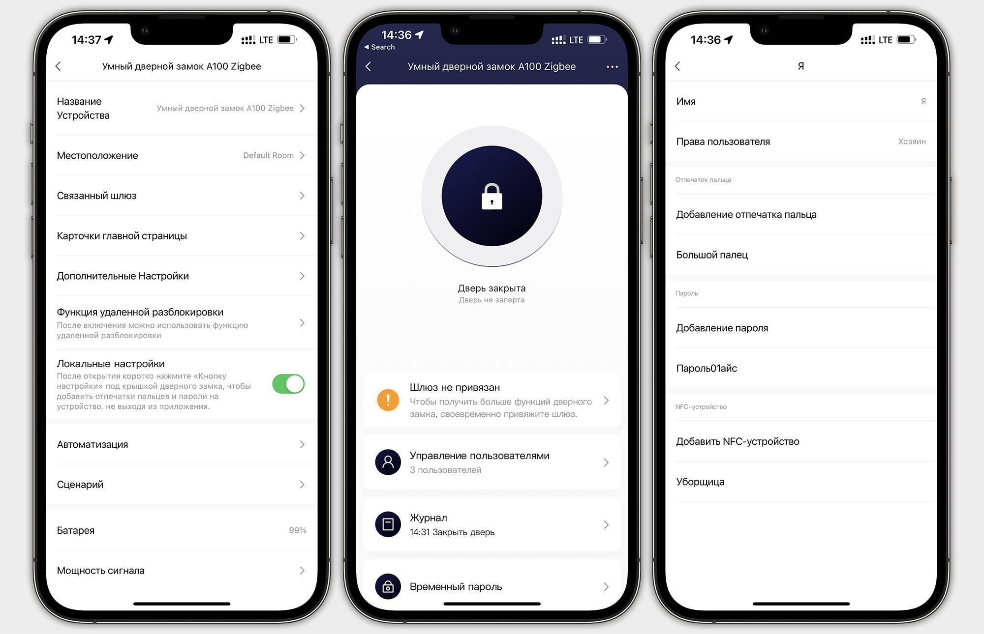 Теперь можно не носить ключи от квартиры или офиса – то есть вообще. Мы перестали. Входим так. Всё равно всегда и закрыть сможете, и открыть. Можно удалённо и легко, буквально за секунды давать или забирать доступы для родных, близких или обслуживающего персонала. Пароли разных видов, NFC, отпечаток позволят вам попадать в квартиру без малого десятком способов. А при наличии других устройств, вроде звонка Aqara G4 – ещё и по лицу.