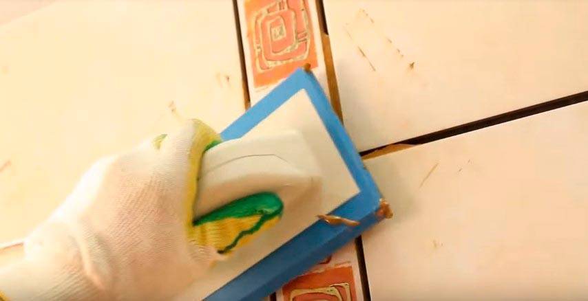 Во время формирования швов необходимо держать инструмент таким образом, чтобы он прикасался к краям кафеля, который уложен рядом. После нанесения затирочного материала необходимо убрать излишки с поверхности кафельной плитки. Для этого можно использовать чистую губку, тот же инструмент, которым вы наносили затирку или простой тряпкой.