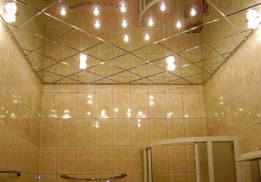 Если вам необходимо увеличить пространство, то зеркальная плитка должна появиться на противоположной окну стороне потолка. Она может покрыть его полностью или иметь вид зеркального панно. Как решить, на каком варианте остановиться? Здесь проблем не будет.