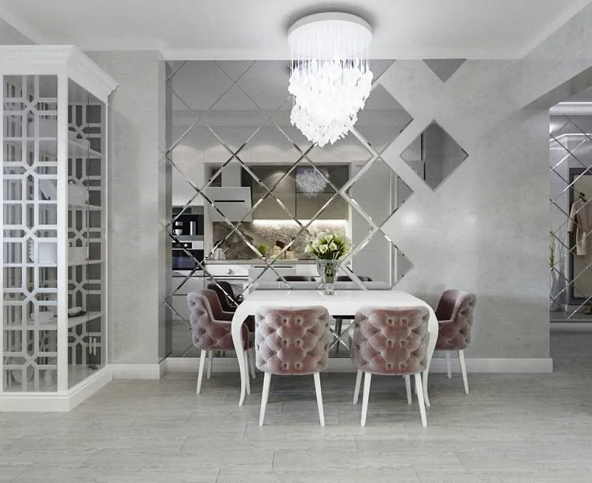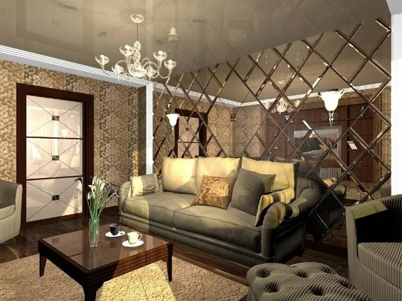 Зеркальная плитка в гостиной, как особый тип украшения.