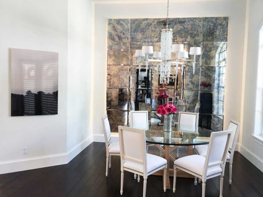 Зеркальная плитка в интерьере придает помещению некий шик. Комната сразу же начинает играть новыми красками, она выглядит свежо и эффектно.