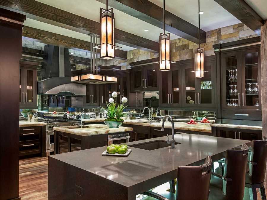 С использованием зеркальной плитки в декорировании кухни – она приобретет определенный шарм, дороговизну и изящность. Больше всего такой декор подходит для интерьеров в таких стилях, как: