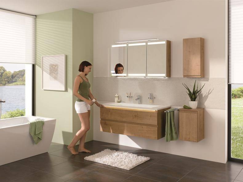 Для изготовления мебели в ванную используется материал, устойчивый к влаге и высоким температурам.