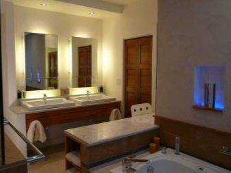 - Дополнительный источник света. Встроенная подсветка может использоваться не только при рассмотрении своего отражения. Она делает помещение более светлым. При этом интерьер не перегружается большим количеством светильников.
